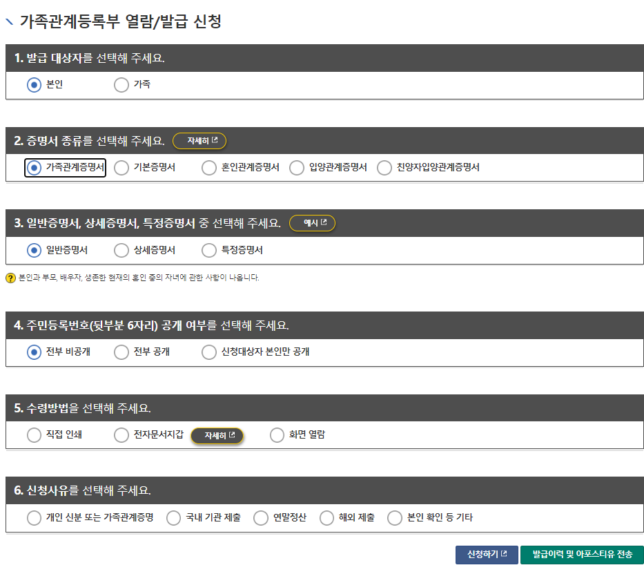 특히 결혼하여 자녀가 있는 분들은 의외로 가족관계증명서가 많이 필요하더라고요.