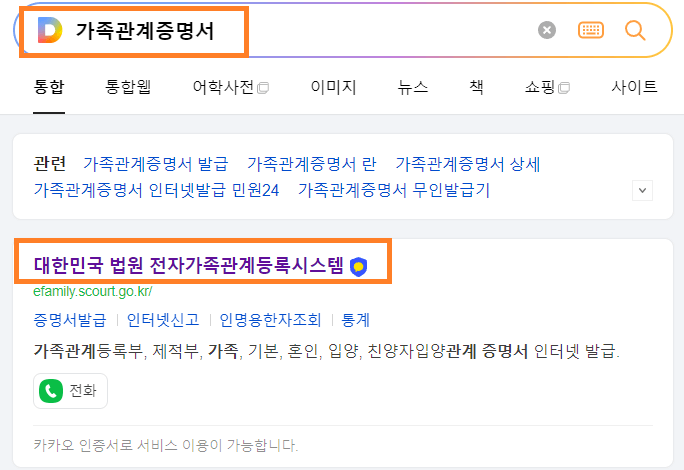 가족관계증명서는 카카오톡으로 따로 발급받을 수 있는 방법이 없습니다.