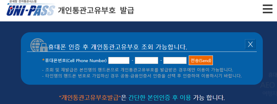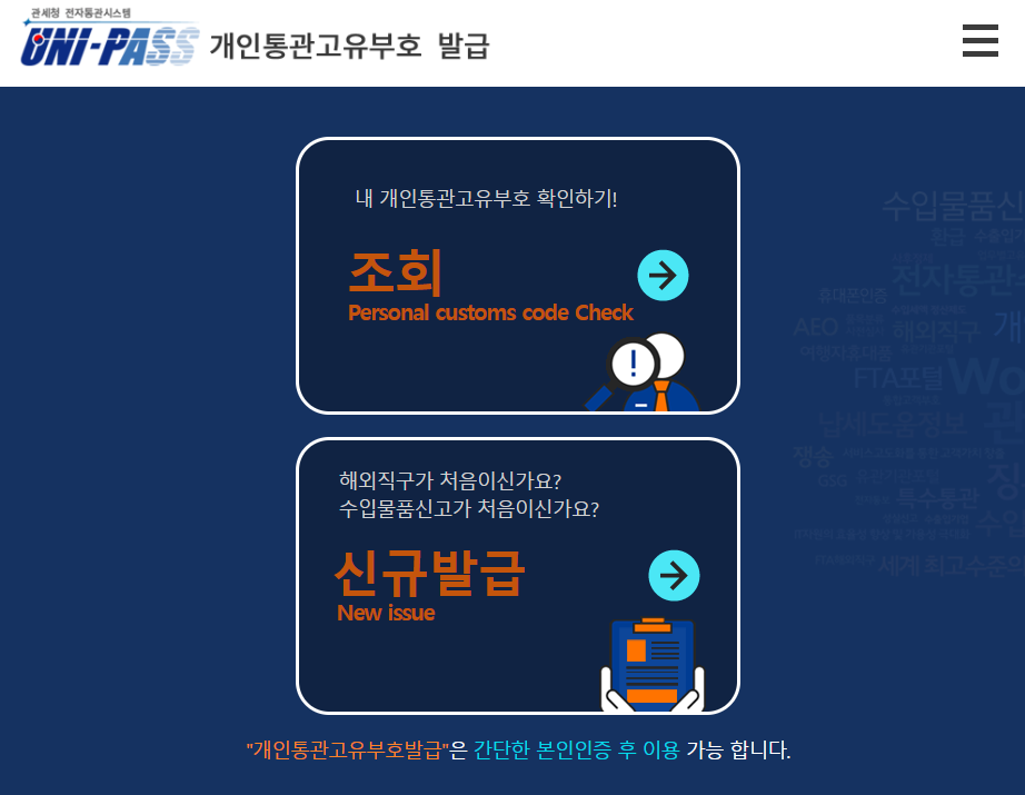 개인통관고유부호를 발급, 조회, 재발급하는 방법은 핸드폰 인증만 할 수 있다면 간단히 받을 수 있기 때문에 아래 내용 확인하여 쉽게 발급받으실 수 있습니다.