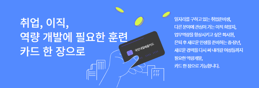 그래서, 이번에는 국민내일배움카드의 신청방법, 신청자격등을 소개하고 바로 신청하실 수 있도록 정보 소개해드릴게요.