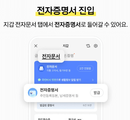 1️⃣카카오톡 지갑으로 주민등록등본을 발급받아 휴대폰에 저장하여 사용할 수도 있습니다. 주민등록등본뿐만 아니라