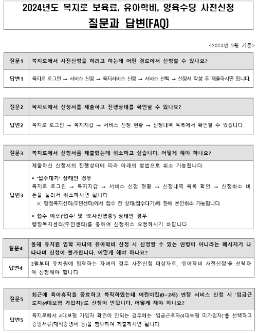 2024년 영유아 보육서비스(보육료, 유아학비, 양육수당) 사전신청을 한다고 합니다.